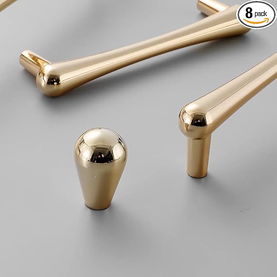- The design of the luxury cabinet knobs is inspired by Water droplets ; the Sleek round lines makes the longer cabinet pulls looks excellent.The cabinet pulls increases the exquisiteness of life.The shiny gold color lights up the space.