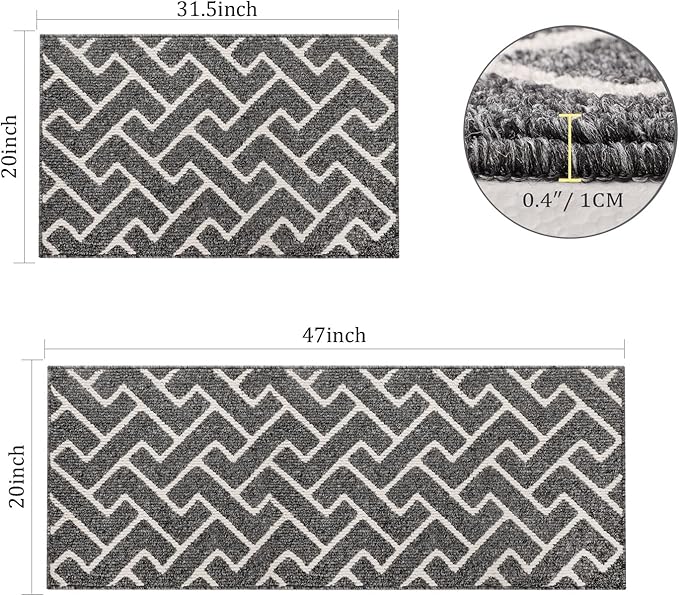 - PREMIUM Polypropylene Kitchen MAT SET: You will get 20″x 31.5″ & 20″x48″ kitchen rug sets, which are made of high quality Polypropylene . As a floor rug used in high traffic cooking areas, large size kitchen runner rug is a great way to keep your kitchen clean and tidy. Great stain-resistant properties protect the floor from oil, dampness, sauces or food particles.Rugs and mats suitable for kitchen. The density and plushness of our pile surpass that of most other brands.