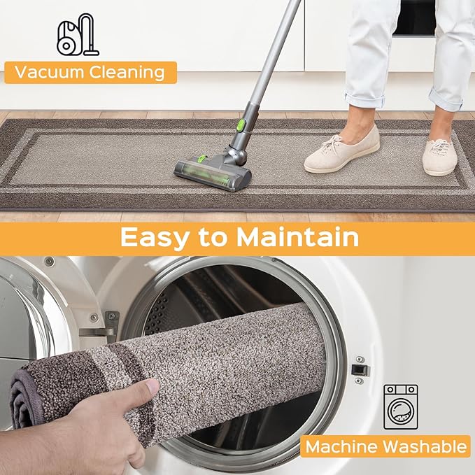 - [Easy Care & Waterproof Kitchen Floor Mat]: With countless polyester microfibers, our kitchen rugs effectively absorb spilled oil and water. The polyester washable carpet is designed to stand up to machine washing, it’ll be easier to wash off the dirt.