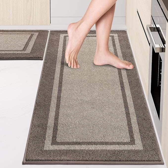 - [Comfortable & Non-Slip]: Kitchen Runner Rugs offer comfort and convenience when cooking, washing dishes or doing laundry. The sturdy, non-slip TPR rubber backing keeps them firmly in place and helps prevent hazards such as trips and falls. Before placing, make sure the floor is clean and dry.